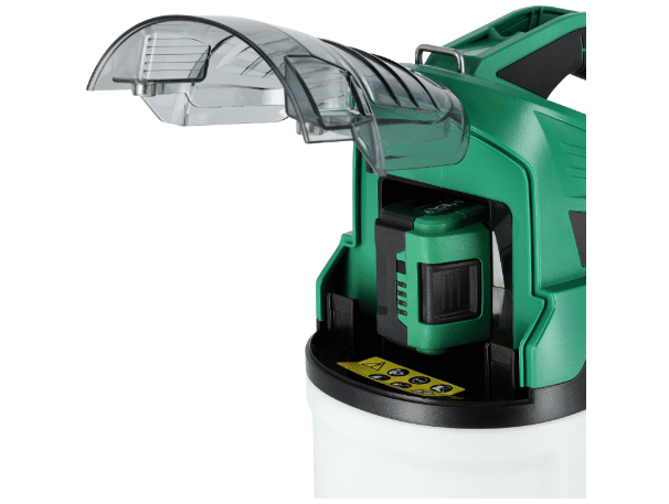 Sprøjten drives af et 20 V Li-Ion-batteri fra S-Volt-systemet, hvilket giver høj driftstid og fuld bevægelsesfrihed. Den ergonomiske udformning og lave vægt gør den behagelig at bruge, selv i længere tid.