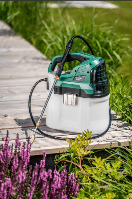 Den er ideel til brug i haver, parker, drivhuse og på gårdspladser, hvor man ønsker hurtig og jævn sprøjtning uden manuel pumpning.
