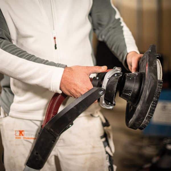 Tillader bearbejdning af overfladeovergange fra væg til loft. Rotationen af ​​kantslibehovedet induceres af værktøjets bevægelse uden afbrydelse af slibeprocessen. Dette resulterer i en 5 gange hurtigere kantbehandling. De integrerede glidekanter på slibehovedet forhindrer beskadigelse af kontaktfladerne på væg og loft.