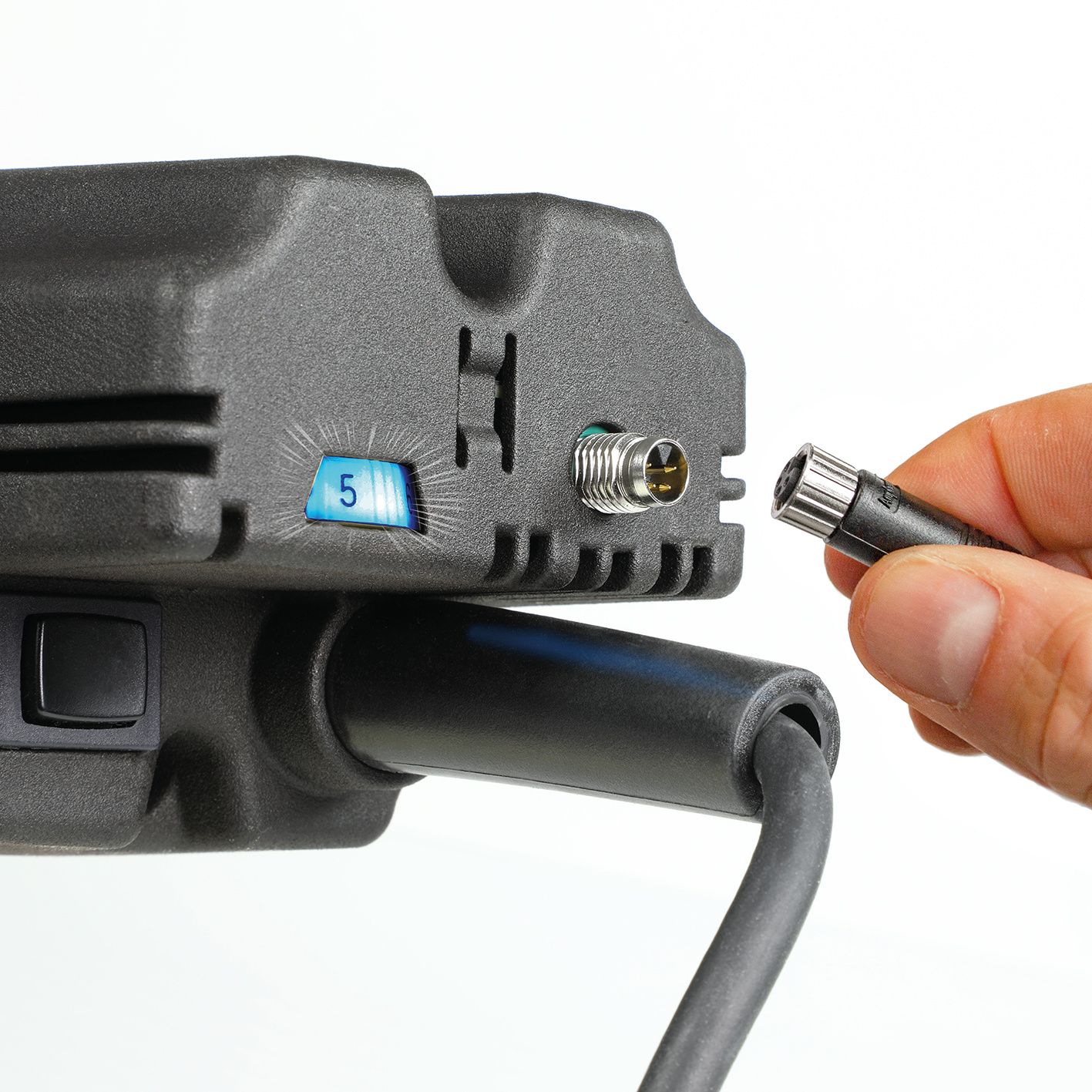 • Duo-In: Omdrejningstallet kan indstilles manuelt eller via portalgrænsefladen samt trinløst, så det passer til ethvert arbejde. Yderligere LED-statusvisning.