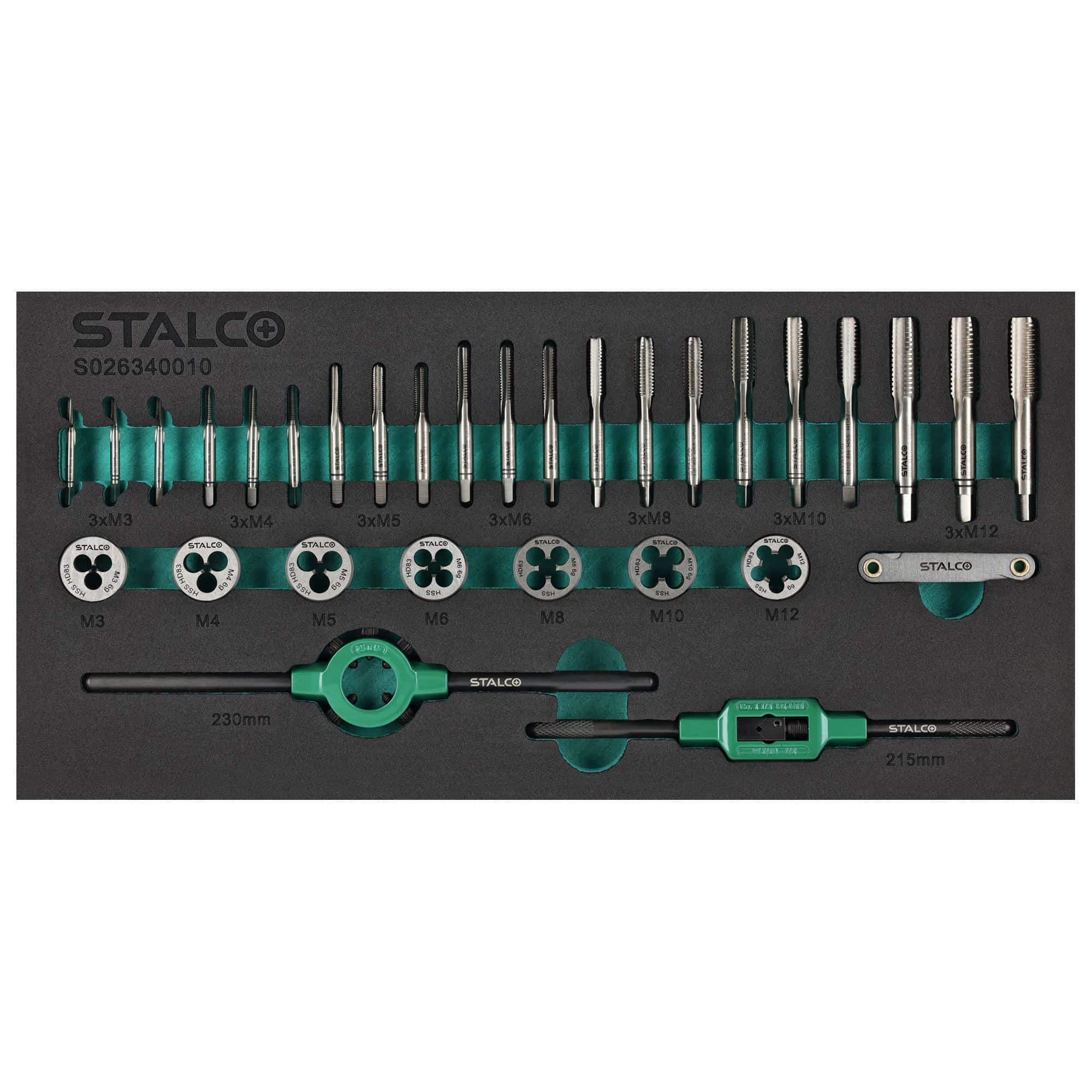 Gevindtap- og snittesæt, 31 dele, EVA-indsats – STALCO