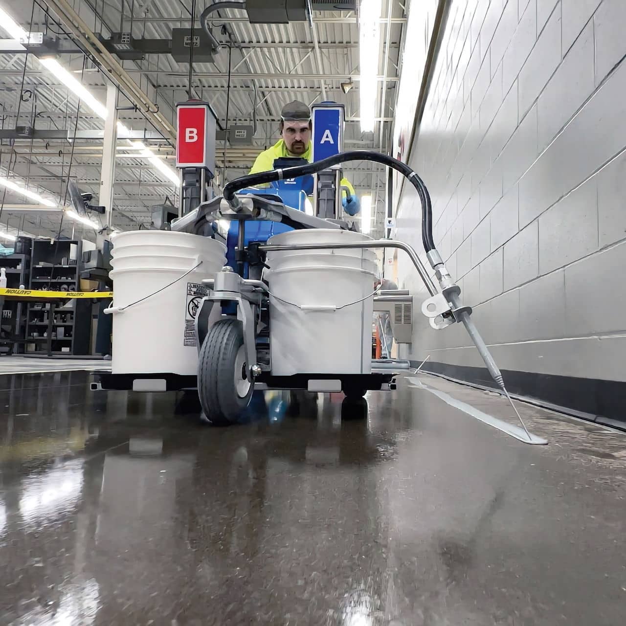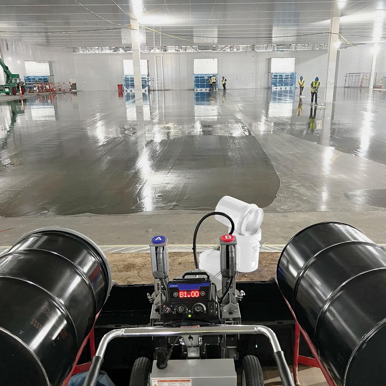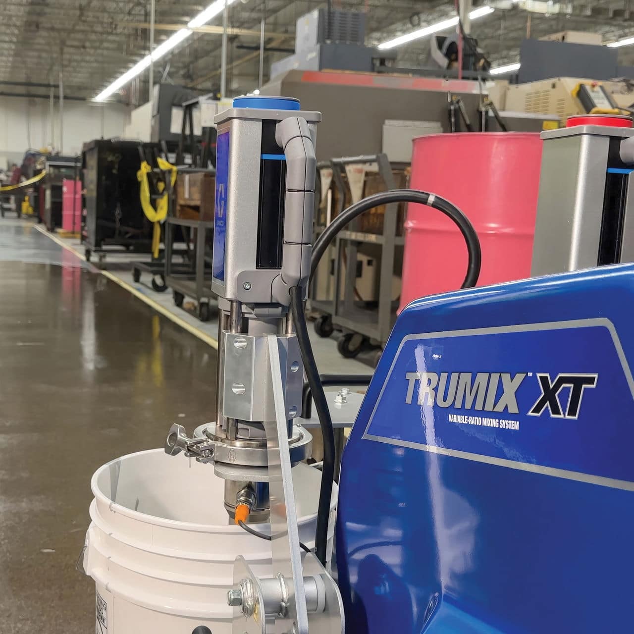 Gracos TruMix XT er en revolutionerende løsning til blanding af 2-komponent gulvbelægninger. Dette system er i stand til at blande op til 450 liter i timen og understøtter næsten ethvert forhold med overlegen nøjagtighed og blandingskonsistens sammenlignet med de traditionelle spandebatchmetoder.