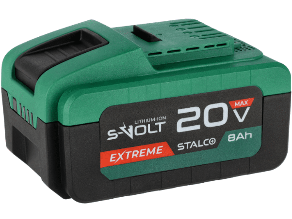 Stalco BLS20-8AHP er et højkapacitets lithium-ion batteri i S-Volt 20 V-systemet. Batteriet indeholder 21700-celler, hvilket giver høj energitæthed og længere driftstid. Det har en kapacitet på 8,0 Ah (160 Wh), og vægten ligger omkring 0,98 kg.