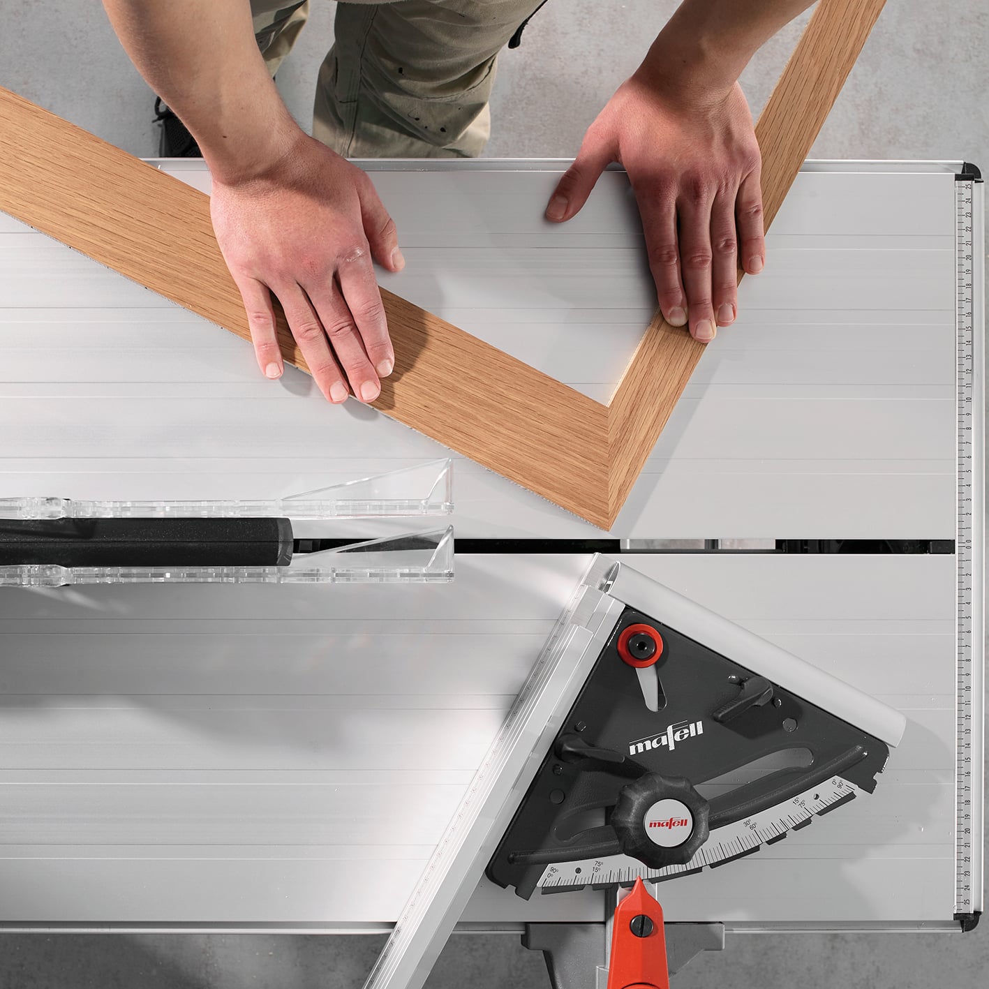 Takket være den indstillelige elektronik E-control og et passende orginal MAFELL savblad, er det muligt – ved siden af træ – også at udføre arbejder i kunststoffer og alu-profiler