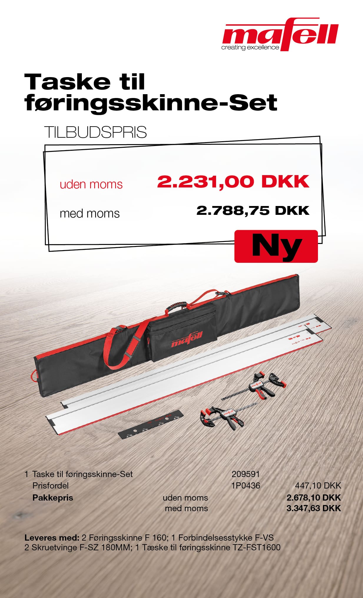 Mafell Taske til føringsskinne-Set 2 x F 160 + F-VS + 2 x F-SZ 180 MM + taske til føringsskinne