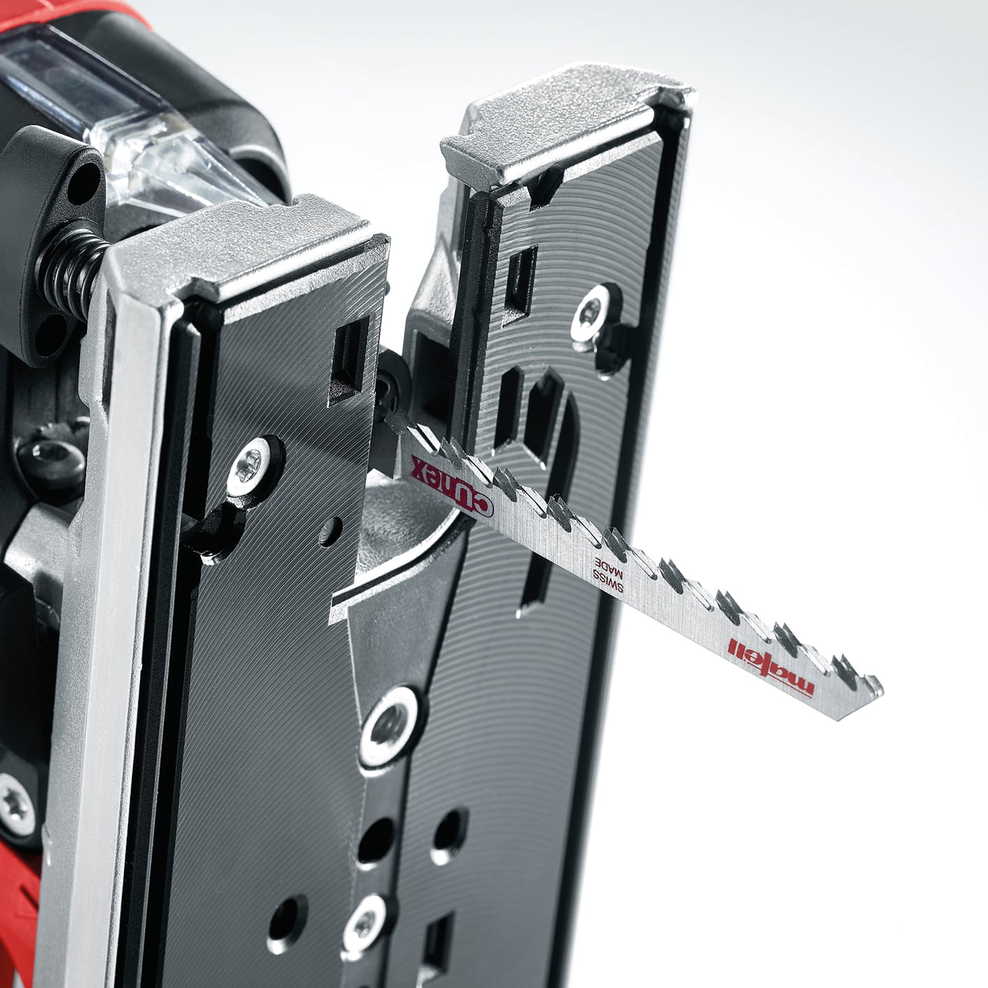 • Grundpladen med dens integrerede udsugningskanal er præcis så stabil, som den ser ud. Med dens quick-lås er den altid forbundet eksakt retvinklet med stiksaven.