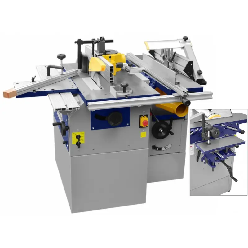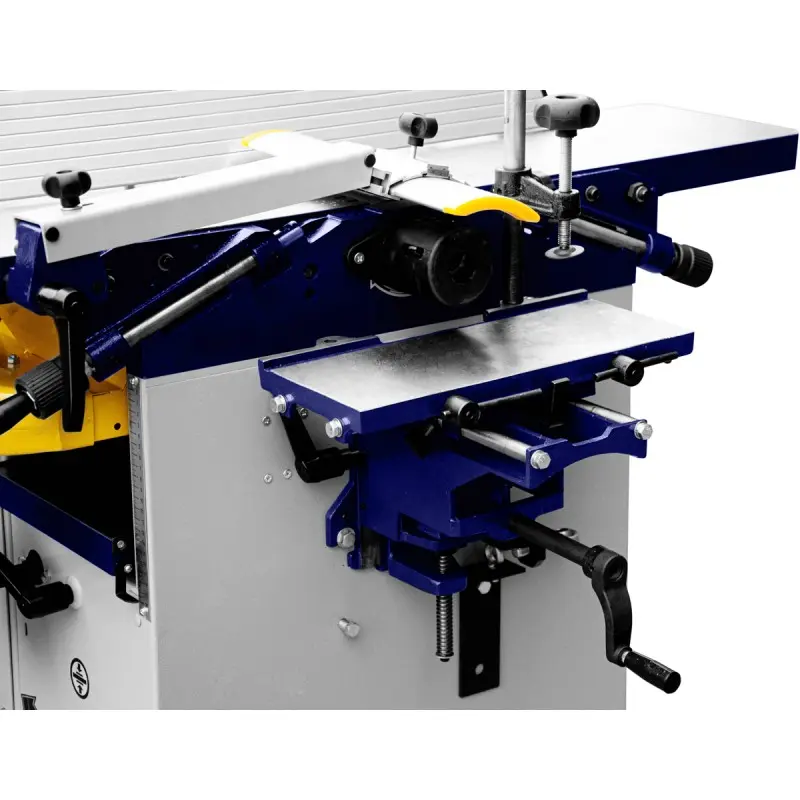 CORMAK CM250 230 V er en alsidig og professionel multifunktionsmaskine til træ, udviklet til snedkerværksteder, håndværksvirksomheder og brugere, der ønsker en kompakt, men præcis multiformålsmaskine. Maskinen kombinerer funktionerne rundsav, afretter/tykkelseshøvl samt underfræser og tilbyder et bredt spektrum af bearbejdningsmuligheder med høj ydeevne og nøjagtighed.