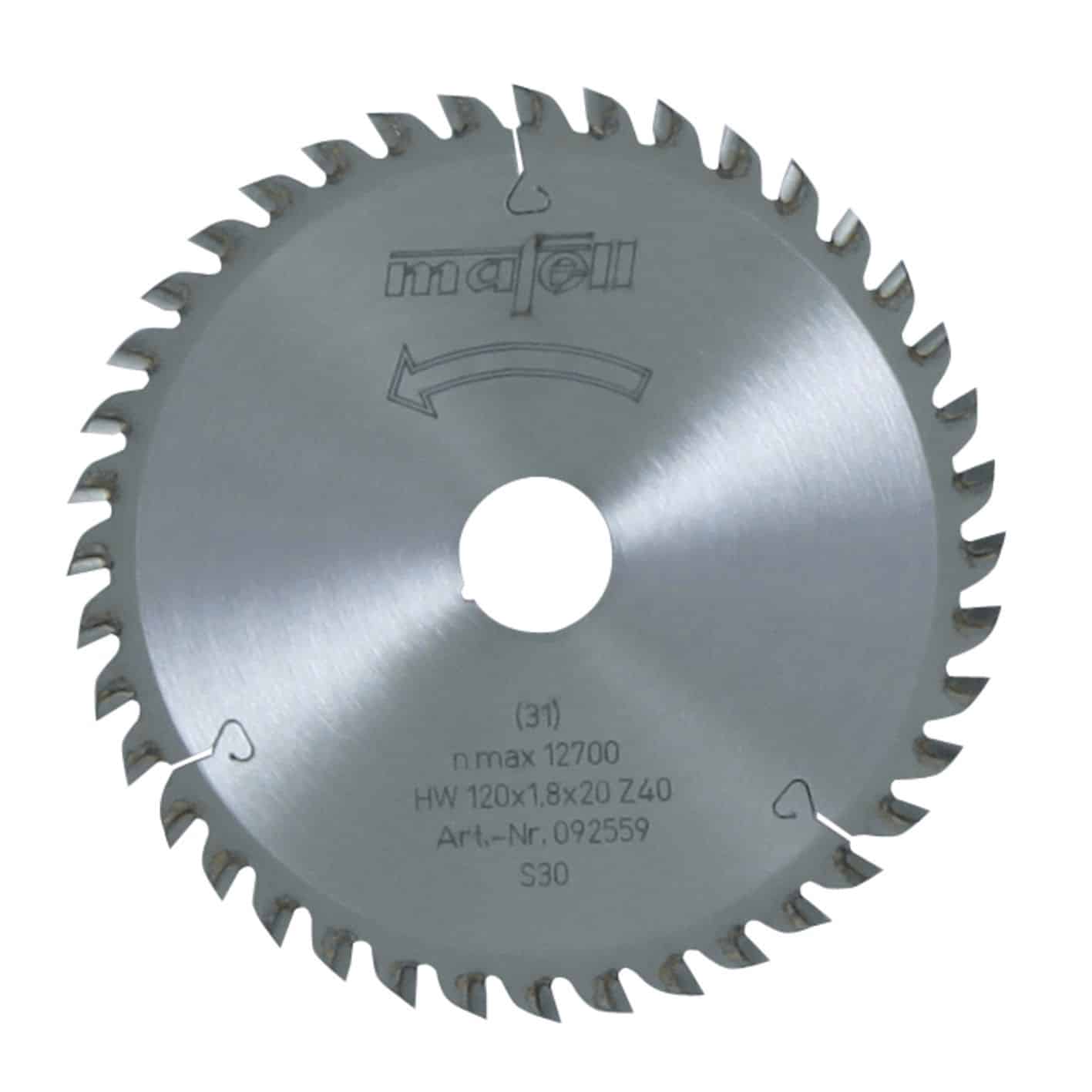 Savblad-HM 120 x 1,2/1,8 x 20 mm, Z 40, FZ/TR, til fine snit i træ