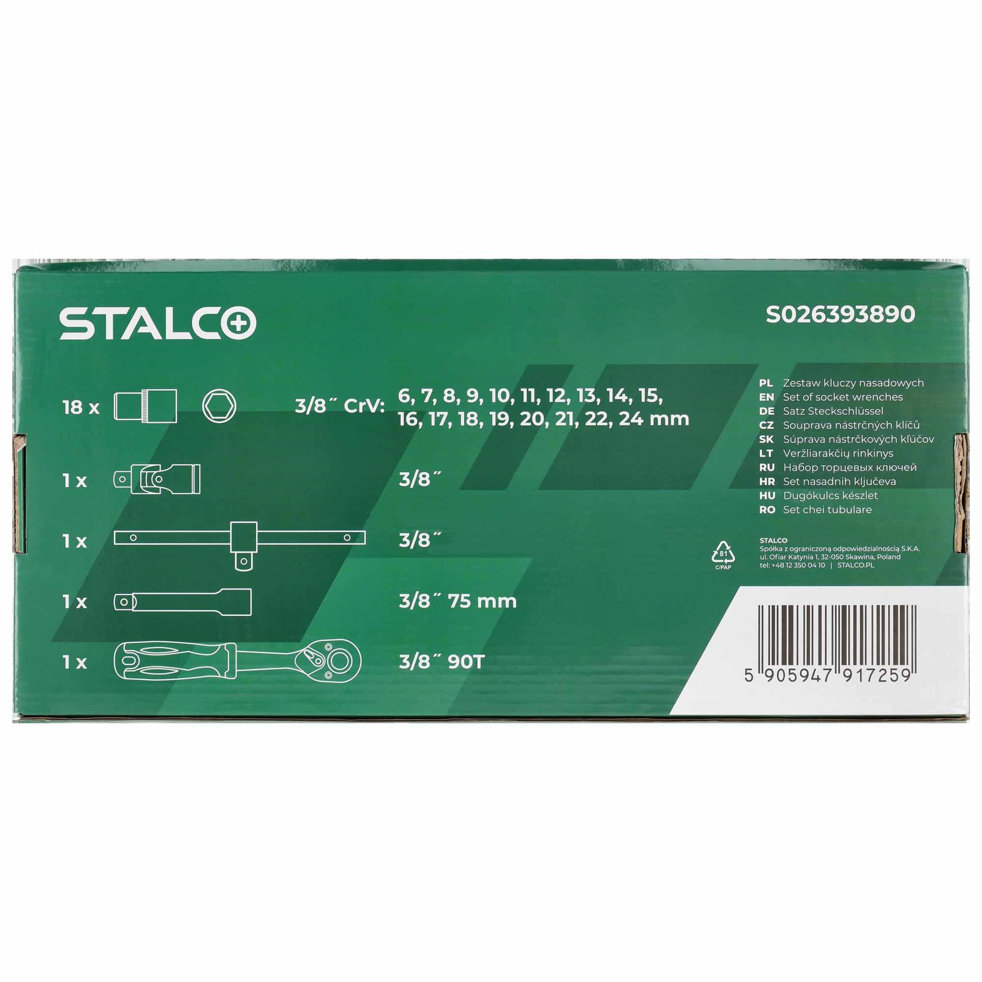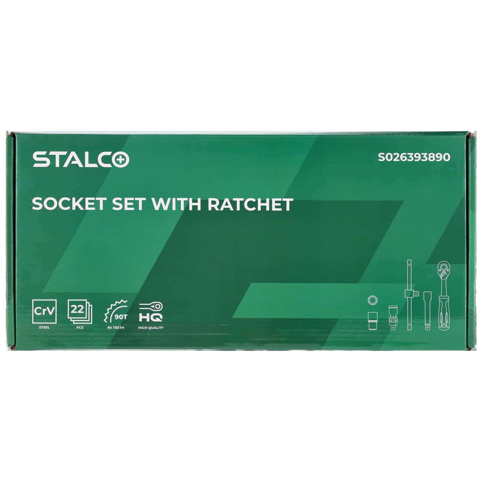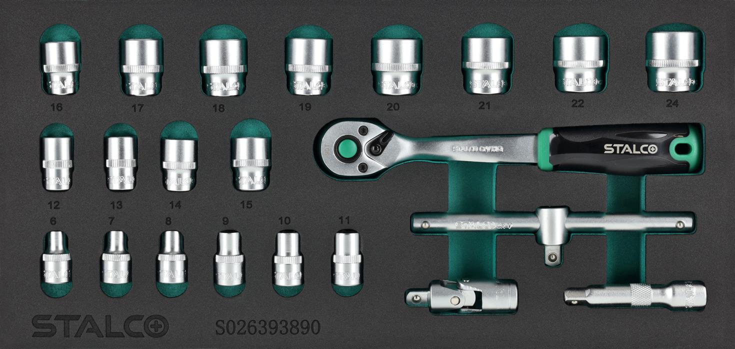Topnøglesæt 3/8” 6–24 mm, 22 dele, 90T, CrV, EVA-indsats – STALCO