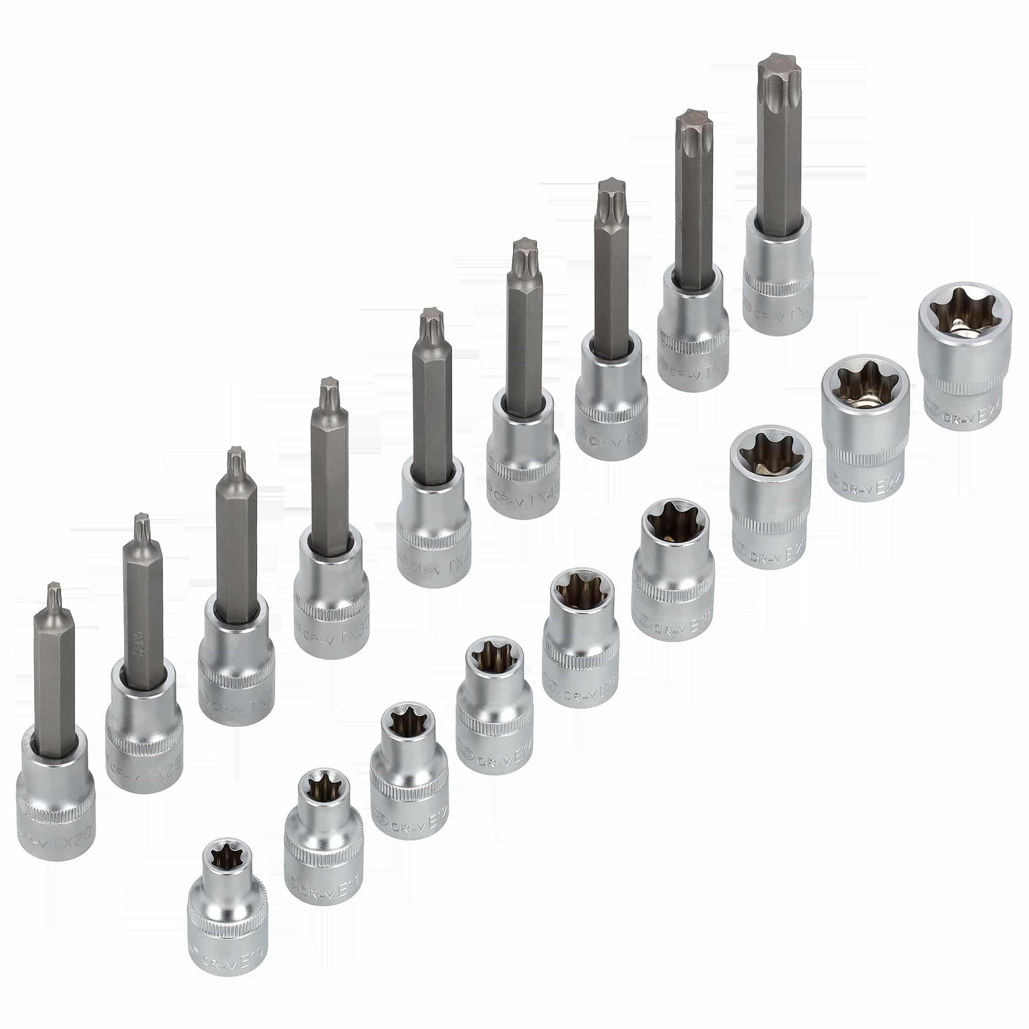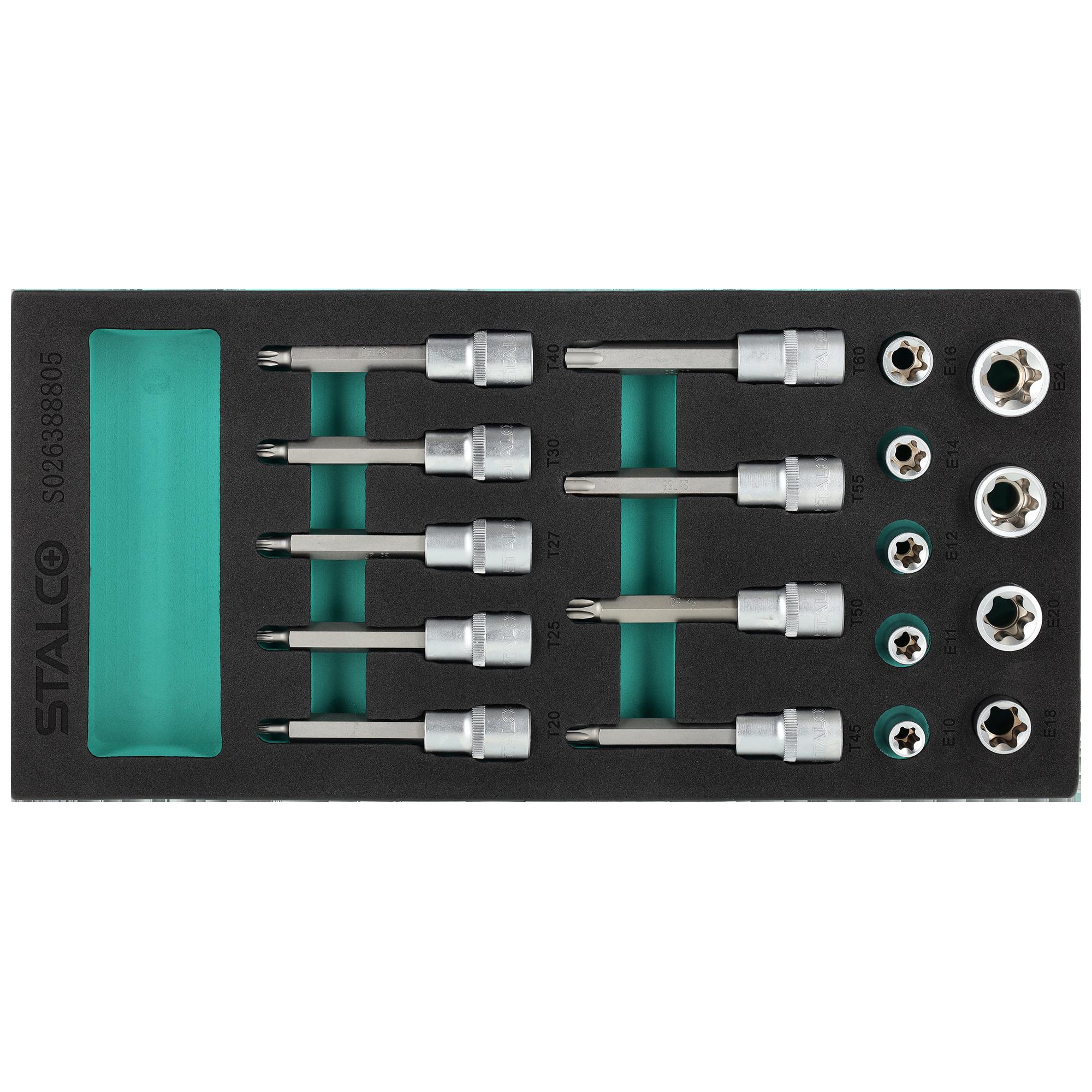 TORX-bit­sæt S2 T20–T60 + TORX-toppe CrV E10–E24, EVA-indsats, 18 dele – STALCO