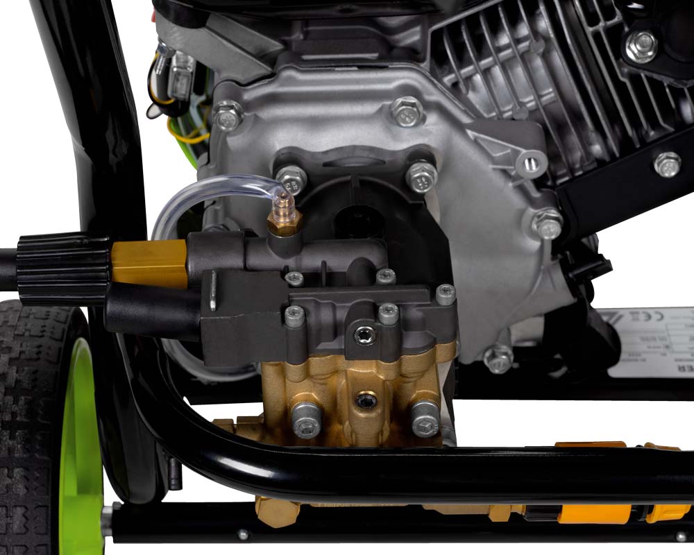 Den benzindrevne ZIPPER højtryksrenser ZI-BHDR180 er udstyret med en messingpumpe, der sikrer et pålideligt nominelt tryk på 180 bar og en høj vandgennemstrømning.